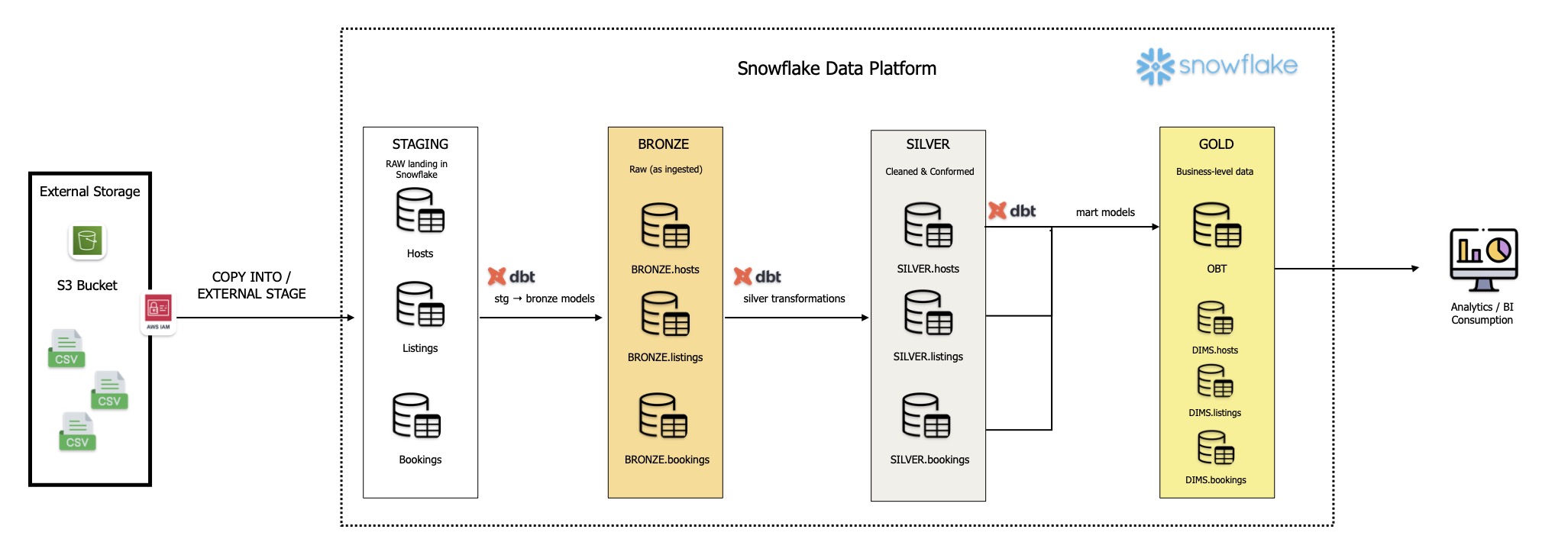 Architecting a Modern Data Pipeline: AWS, Snowflake, dbt & the Medallion Architecture